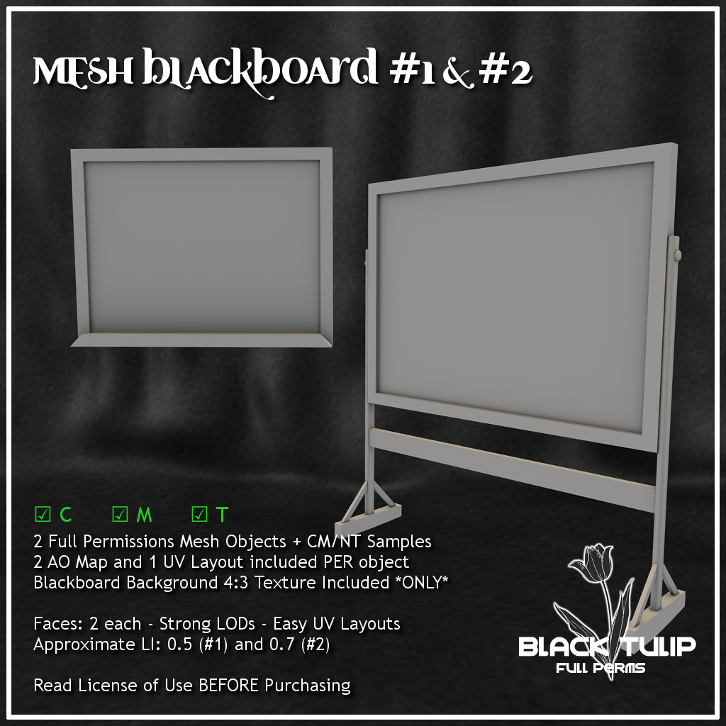 Two new releases for Woeful Wednesday: A couple of haunted blackboards that will show threatening text about your situation. Perfect to be included in the Haunted Little School, they're set today only at L$50, tomorrow they go to full price. Enjoy!